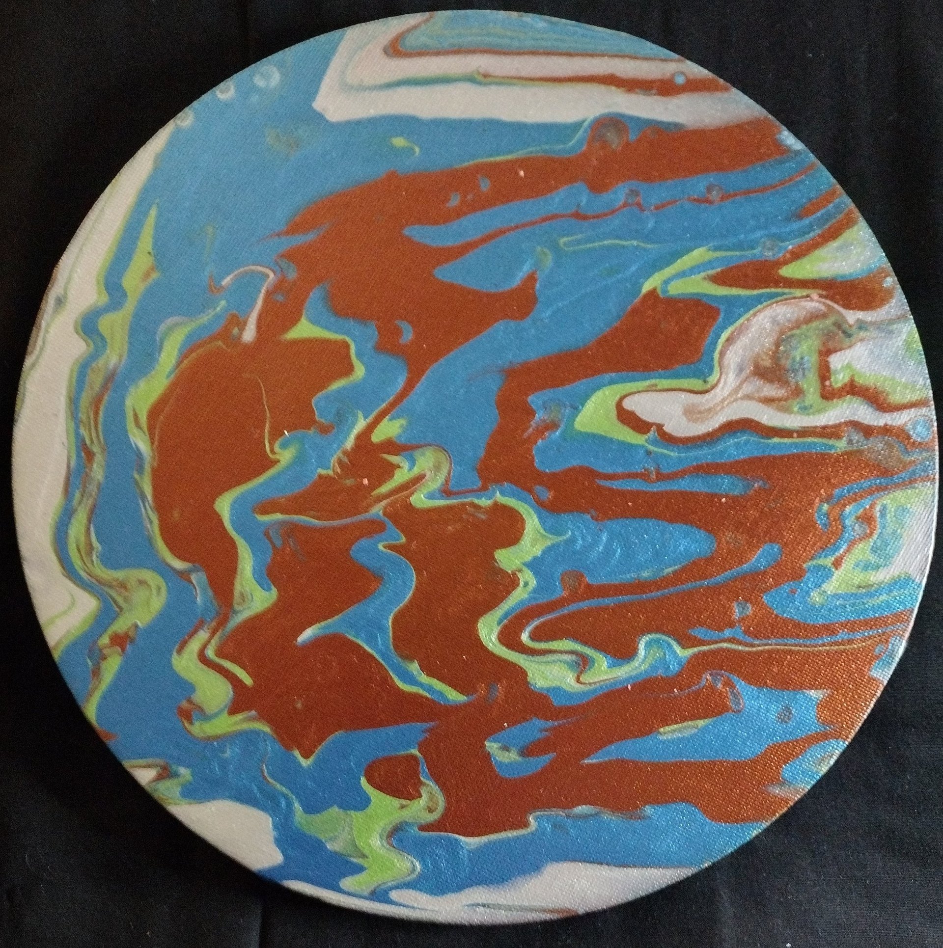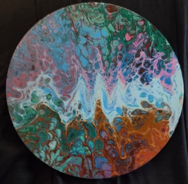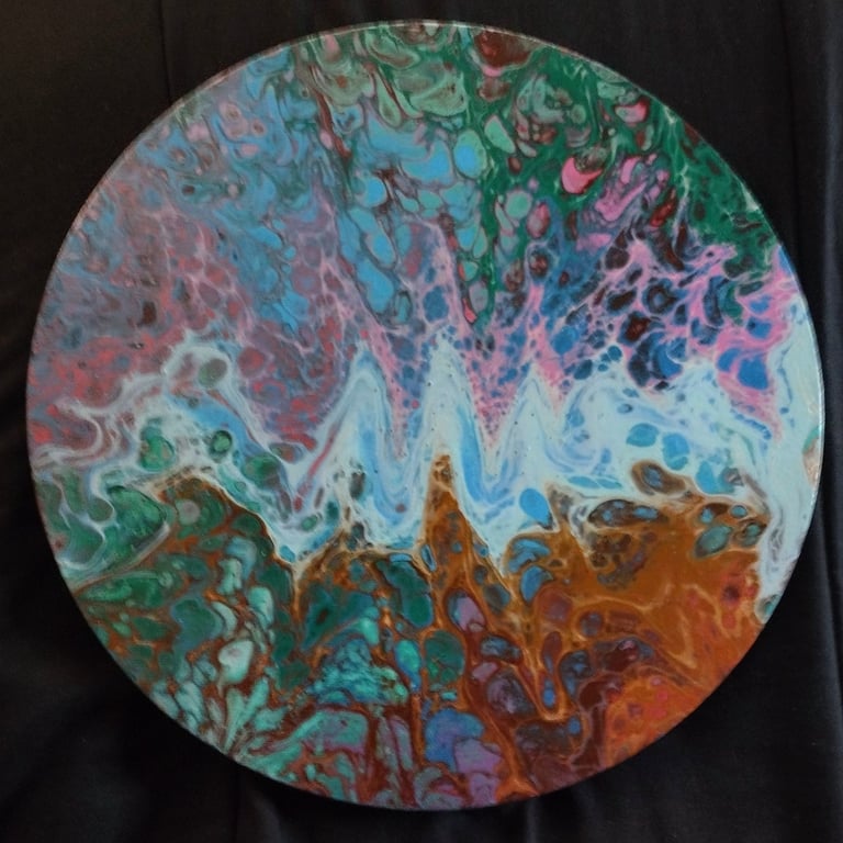 {BOTTOM CENTER} The circular blue and pink painting is 30cm or 11.5in $575